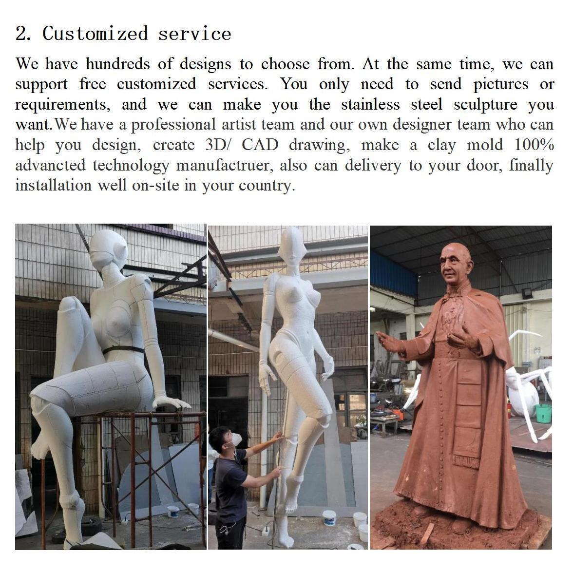 Our raw materials come from government-operated stainless steel factories, and we have test certification for each batch of materials. We only use 304 or 316 to make stainless steel sculptures. However, other businesses use 201 stainless steel for low prices.